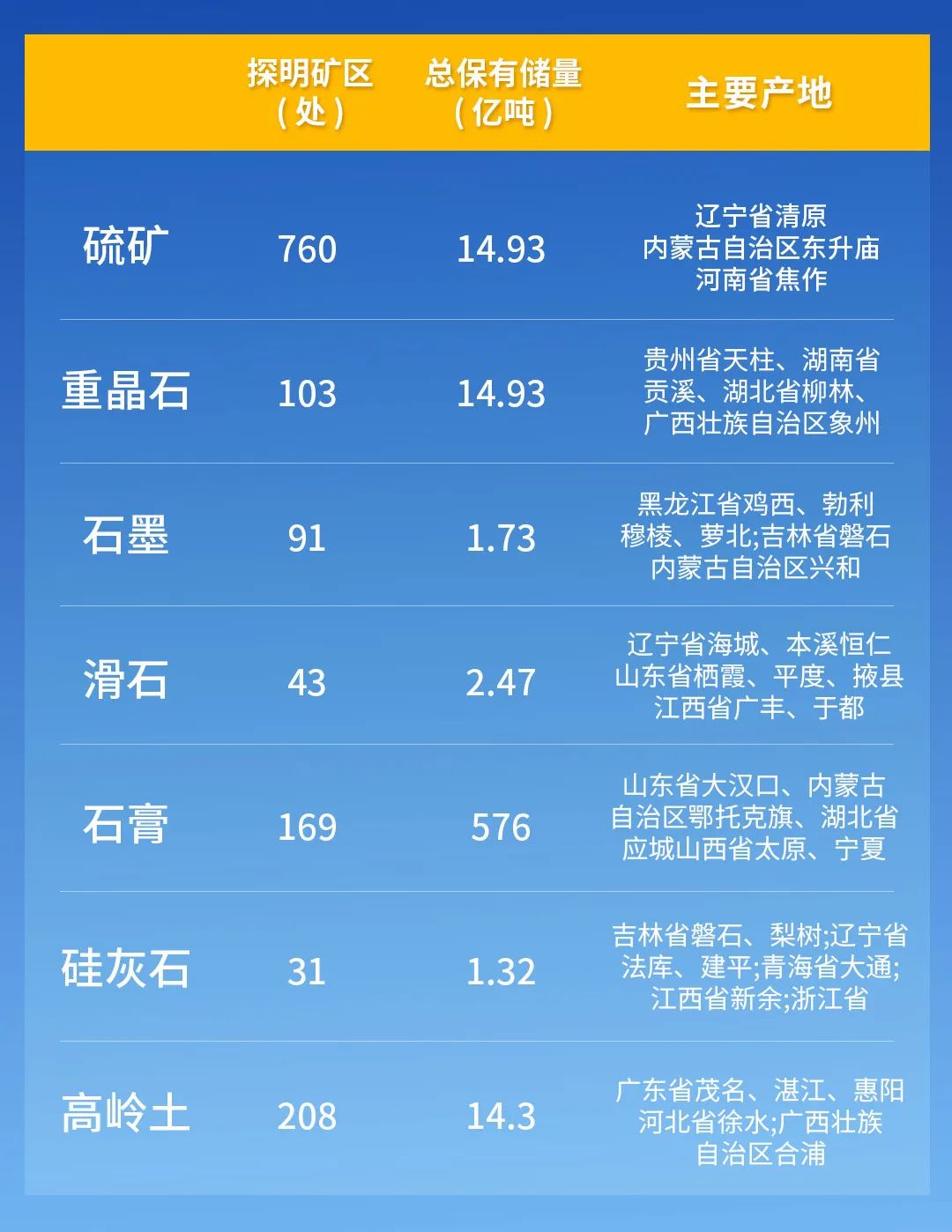 常見非金屬礦產分布